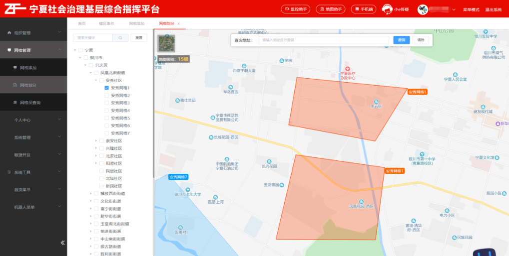 图三:宁夏社会治理基层综合指挥平台-网格统一划分管理