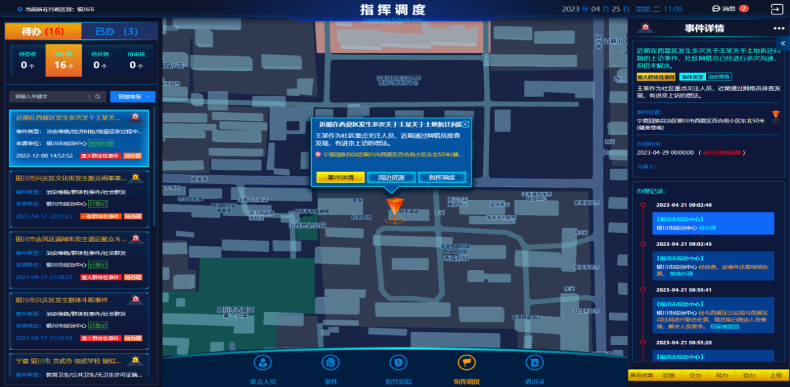 图四:宁夏社会治理基层综合指挥平台-指挥调度展示