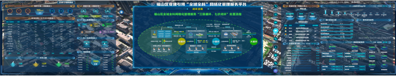 以提升群众的幸福感和满意度为目标,构建起以党建为统领,以“事要解决”为工作导向,以提升精细化治理、精准化服务为目标,整合社会治理资源,依托网格化管理服务体系,建立全域联动、全科服务、全时运转的“三级循环、七步闭环”处置流程,打造集信息汇聚、指挥调度、智能研判等功能于一体的全域全科网格化管理服务平台,最终实现“一屏观全城、一网管全域”。