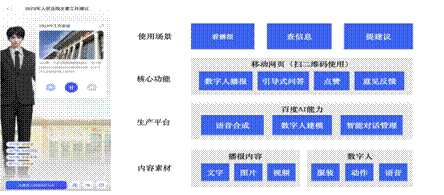——查信息:用户可向数字人询问最高人民法院工作报告中关注的问题,数字人会从报告中截取相关详细内容播报给用户;此外,用户也可进一步查询报告中提到的数据、案例等。