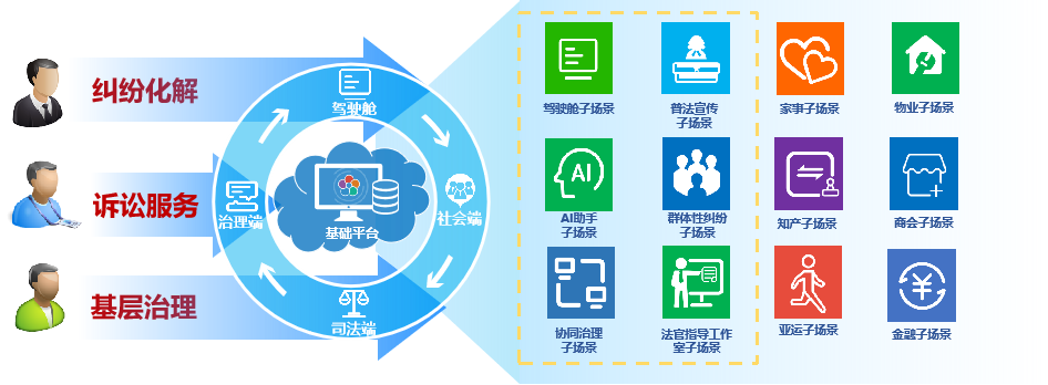 共享法庭集成应用是运用数字化、智能化手段,将司法触角延伸到镇街、村社等社会治理的最末端,把调解指导、网上立案、在线诉讼、普法宣传、调解培训、基层治理等服务送到群众家门口,依托语音唤醒、语音识别、自然语言理解、要素识别等人工智能核心技术,构建起共享法庭AI助手,赋能共享法庭集成应用智能化的问答能力,通过以知识图谱为依托的法律认知技术识别待检索词语的含义,归入构建的知识图谱,畅通信息输入与输出机制,实现机器的语义分析等功能,让共享法庭更好的“理解”用户的语言、识别用户的意图并进一步提供相应的解决方式,努力打造学习宣传贯彻习近平法治思想的基层阵地和一站式诉讼服务、一站式多元解纷、一站式基层治理的最小支点,将法治力量赋能到基层社会治理的最小单元,形成线上线下深度融合、高效协同、整体智治的矛盾纠纷化解和基层治理格局。