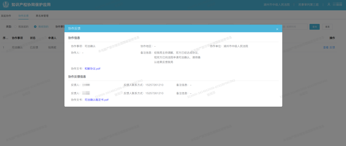 针对知识产权案件停止侵害判项执行难问题,与行政机关建立协同监管机制。法院在线发起协作后,由行政机关将义务人作为重点执法检查对象纳入日常监管,通过“司法执行+行政监管”工作机制,有效解决继续侵权、重复侵权频发问题。