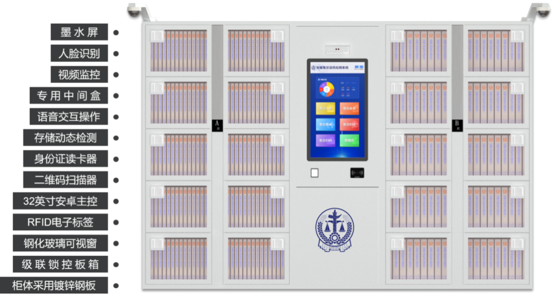 2.智能卷宗材料流转中间柜一键定位、自助存取操作:卷宗流转在系统全程留痕,查询卷宗即可快速定位到卷宗所在部门和持有人;配置存取动态检测及声光指引装置,可提示用户正确拿取中间盒,同时提供错误拿取时的语音提示功能;对卷宗滞留过久的环节及时发现和管理,推进卷宗流转速度。