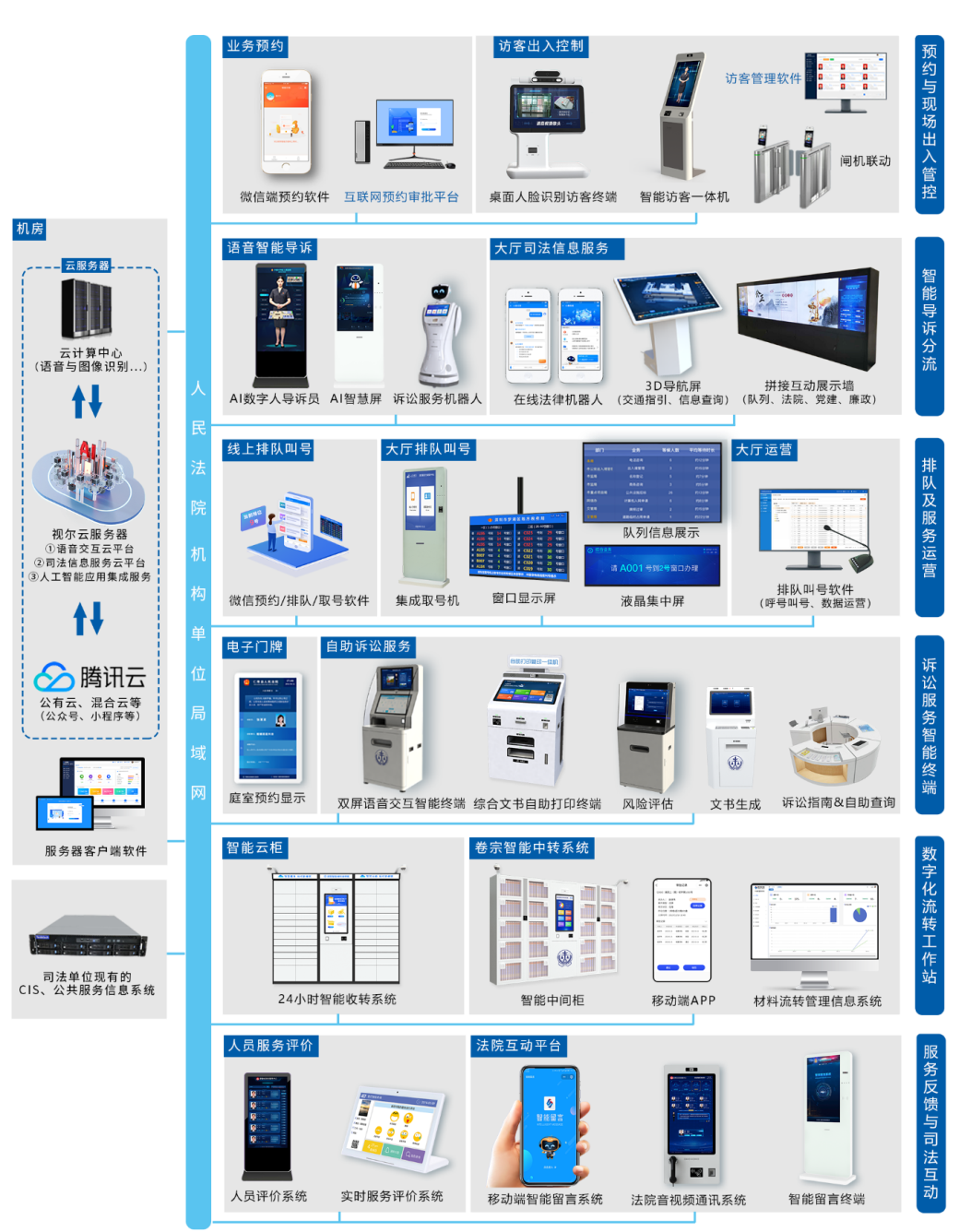 视尔政法智能化大厅系统具体架构如下图所示: