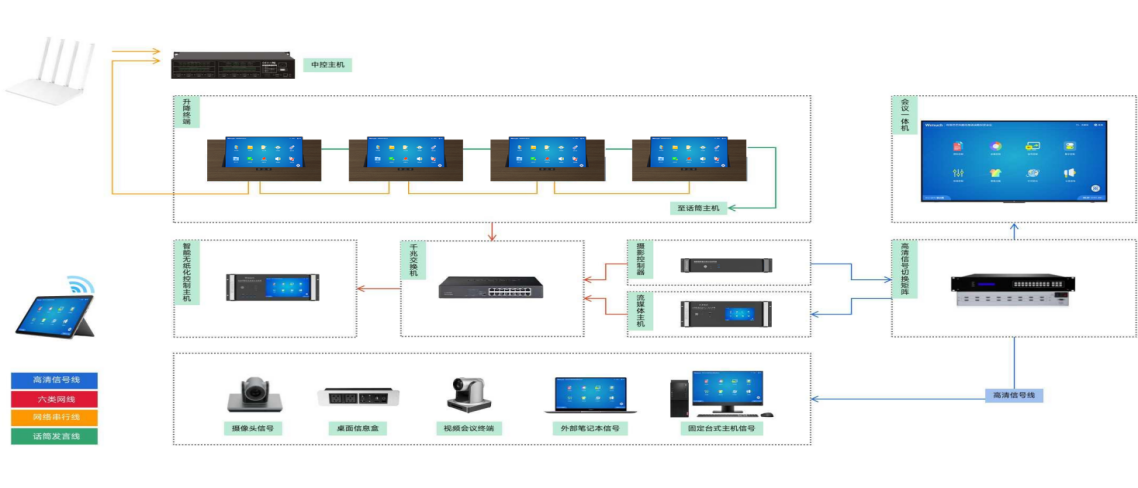 7.支持双路高清信号无缝切换,本地信号和视频信号以及公共信号通过硬件实现一键式切换,实现一屏多用的效果;