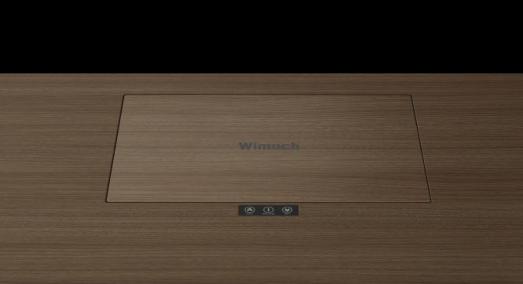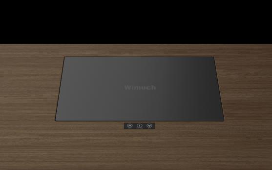 3. 面板和机身均采用阳极氧化铝拉丝工艺,采用Wimuch定制LED智能控制开关,可通过手机APP一键式操作(翻转、PC开关机、会议设定等),无需再外接中控单元,带图案英文标识,耐磨及触感灵敏;