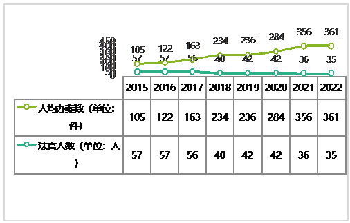 图2 近年来L法院法官数量及人均办案情况