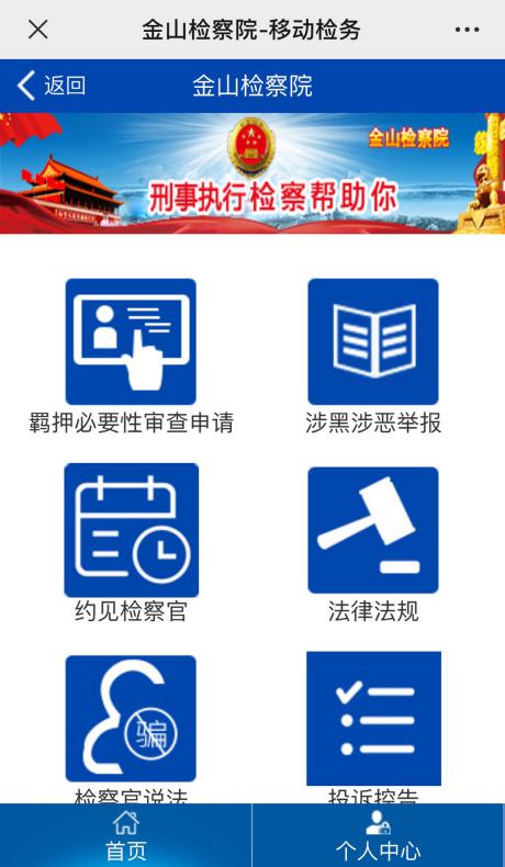 为更好贯彻落实少捕慎诉慎押刑事司法政策,真正将人民群众合法权益落到实处,上海市金山区人民检察院以羁押必要性审查工作为起点,结合刑事执行检察工作职能和要求,研发将执行检察的法律职能包括职责范围内的投诉咨询、刑事诉讼流程期限的告知、家属防司法黄牛诈骗的宣传等融合为一体的多功能立体化平台—“执检通”轻应用,平台包括羁押必要性审查申请、约见检察官、检察官说法、法律法规、投诉控告、涉黑涉恶举报六大功能版块。通过“信息化+检察工作”新模式,努力提升刑事法律监督和服务水平,打造立体监督平台,同时提供便捷化服务,提高工作效率和办案水平,使群众切实得到信息化的实惠和利益。