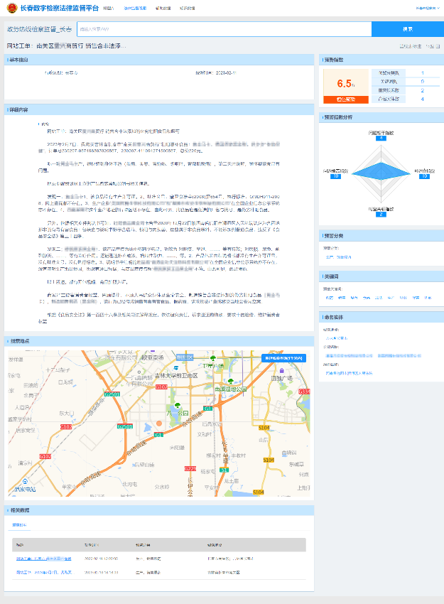 2017年,长春市人民检察院作为公益诉讼试点单位,率先建设了公益诉讼大数据应用平台,通过信息化、数字化手段解决公益诉讼诸多业务难题。该平台使用至今,效果良好。在数字检察工作中,我院积极探索将公益诉讼大数据应用进行了升级,并扩展了民事、行政、刑事监督业务,形成一套完备的数字检察大数据法律监督解决方案。