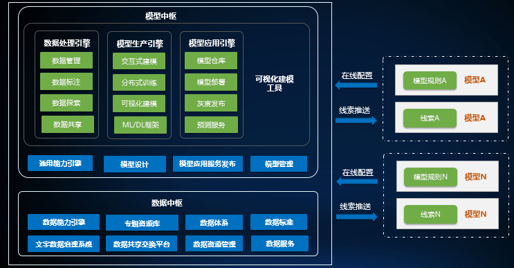 模型管理子平台具备虚拟化异构算力和弹性扩缩容能力,实现模型配置、规则配置、模型管理子平台包含灵活的规则配置、指标配置等功能,通过模型的集中化管理、模型仓库、生命周期工作流管理、模型评估、监控以及版本、权限管理,有效构建监督模型的全生命周期管理体系,实现模型管理工作的标准化和系统化。