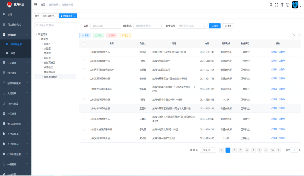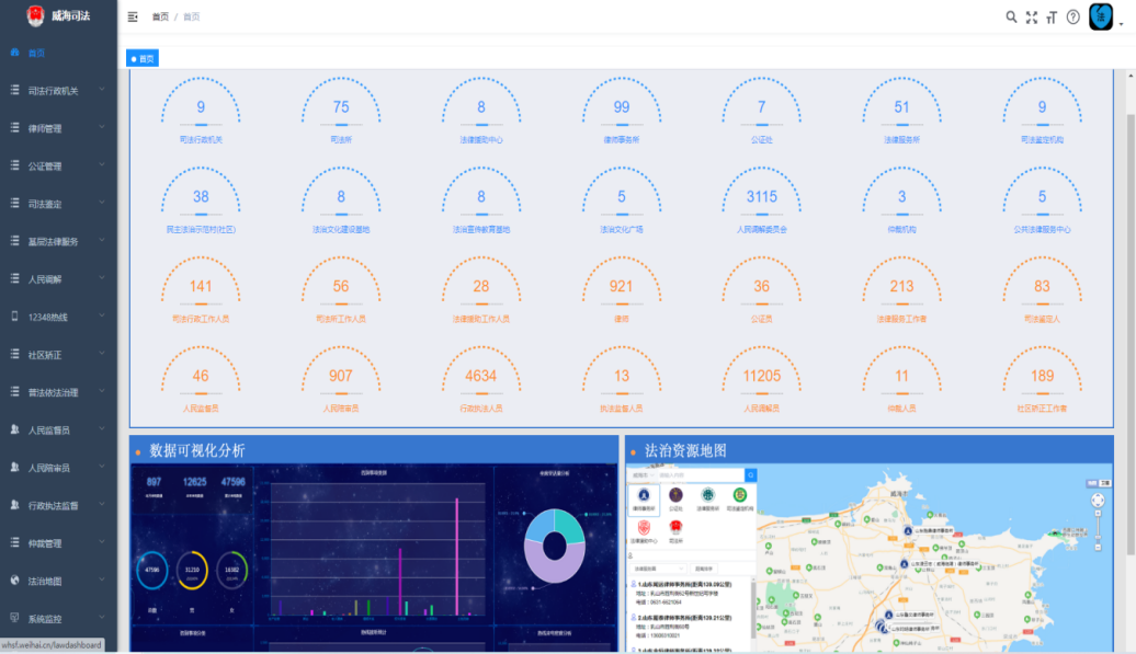 近年来,威海市司法局深入贯彻落实司法部、省司法厅和市委政法委有关“数字法治、智慧司法”的决策部署,以信息化推动司法行政各项工作发展,全面提升法治为民的能力和水平。围绕为企业、群众提供一站式线上法律服务,牵头研发了综合数据应用系统,在更好地满足广大群众法律需求同时,为优化法治营商环境,助力法治政府建设提供了有力的数据支撑。