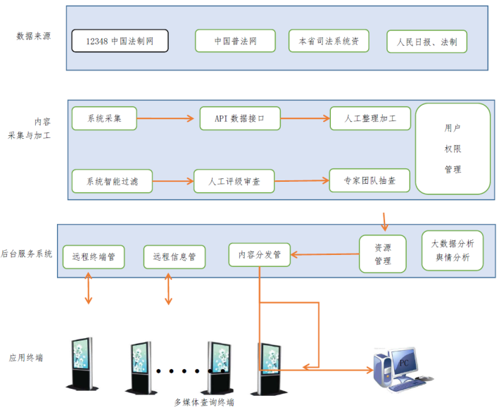智慧司法终端服务系统为全国区县司法局提供数字化法律服务管理手段和精准普法宣传平台,为本地群众提供最便捷、最经济、最高效、最亲民的“指尖上的公共法律服务”,打造最贴近广大老百姓的主流法宣阵地,打通智慧普法和公共法律服务“最后一公里”。实现法援和普法大数据的本地化存留,助力基层构建符合国情、线上线下相结合的新型公共法律服务和精准普法体系,服务我国数字法治建设。