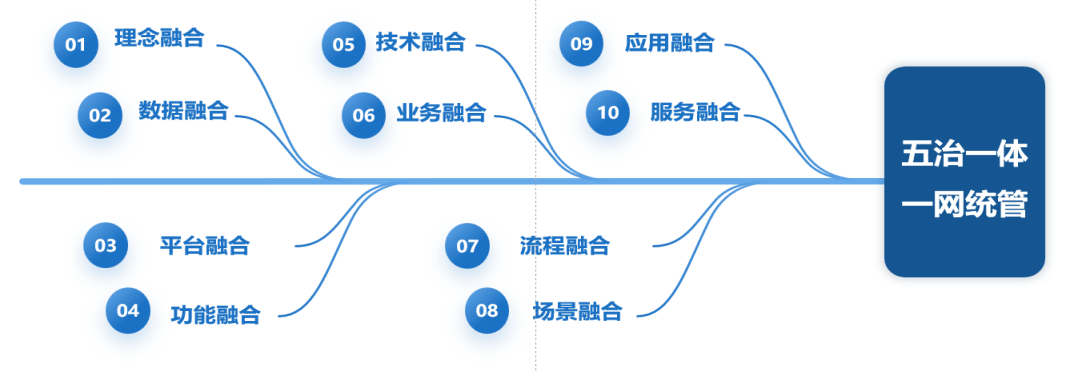 理念融合:构建党建引领“田字型”基层治理体系,以大数据赋能网格化服务管理,为基层减负提效,走好党的群众路线,践行新时代“枫桥经验”,实现共治、自治、法治、德治、善治“五治一体”。
