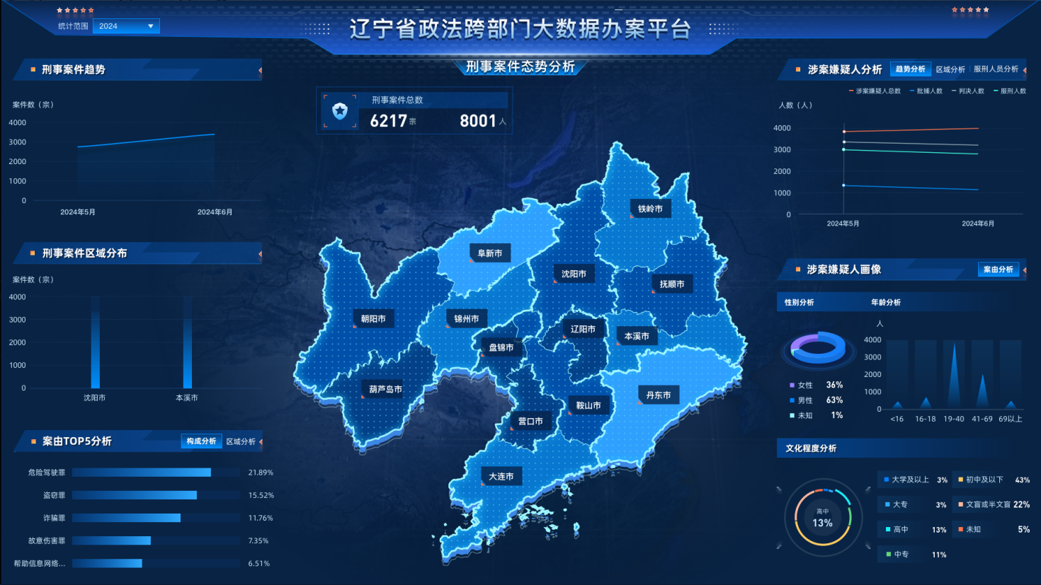 辽宁省政法大数据监督分析系统,创新数字化监督模式,通过对业务信息的统一整合和智能化处理,开展在线案件评查和监督,将大数据转化为加强治安防范、打击刑事犯罪、创新社会治理的战斗力,推进执法司法监督等工作的质量和效率变革。