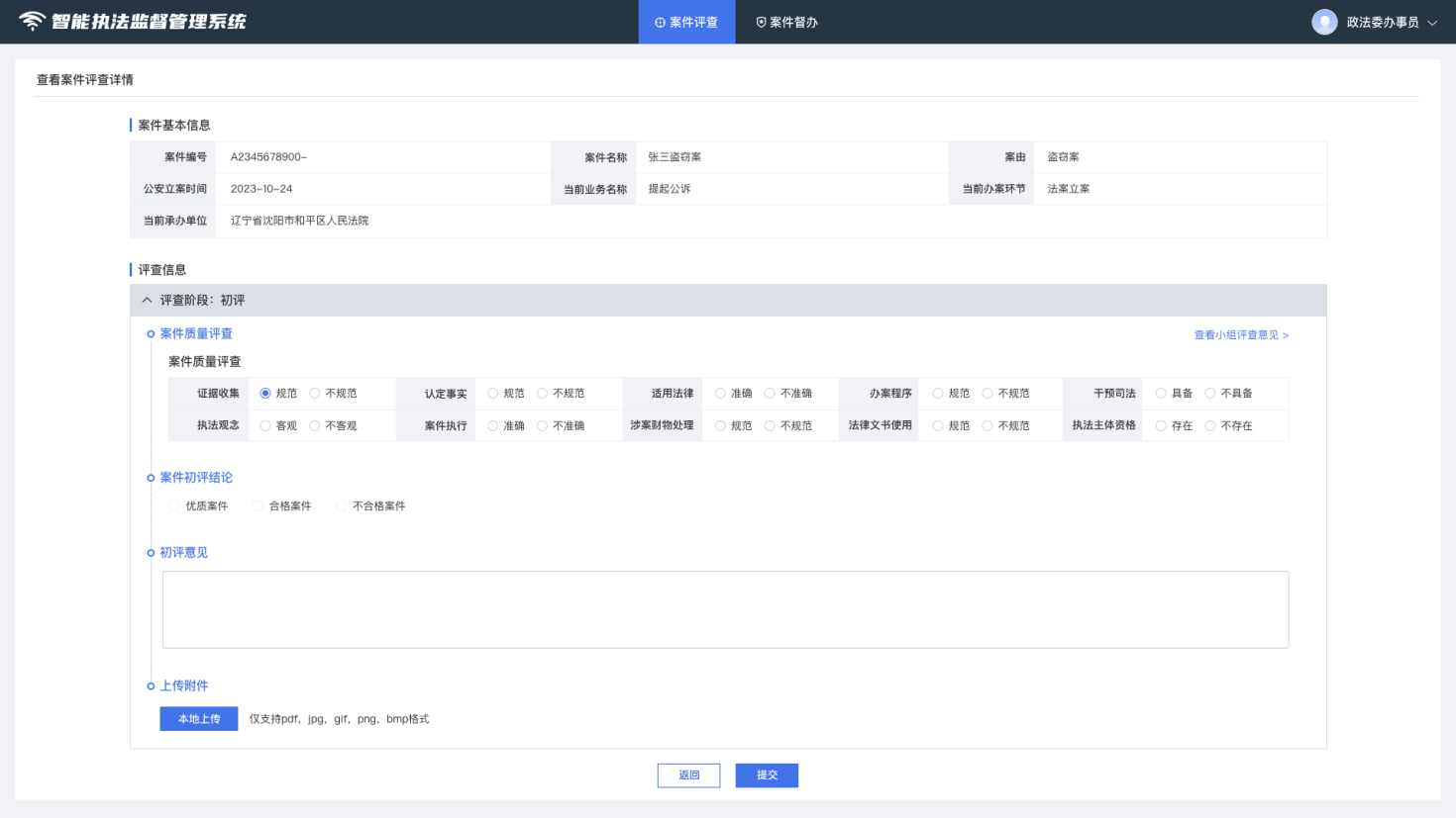 实现评查等相关工作全流程线上办理,提升监督与评查的覆盖面、主动性、及时性和精准性,强化常态化执法司法监督制约机制。
