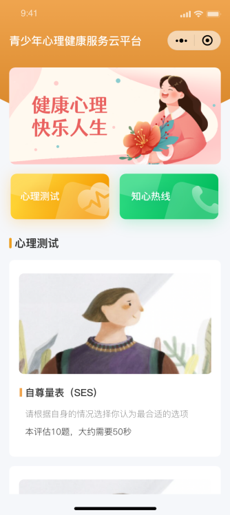 中小学校面向所有学段中小学生开展统一的心理健康测评,包括提供专业全面的心理服务量表、个性化测评与分析、专业的心理健康咨询、心理健康预警监测等服务,帮助学校更好地履行心理健康教育的职责和使命,提高学生的心理健康水平。