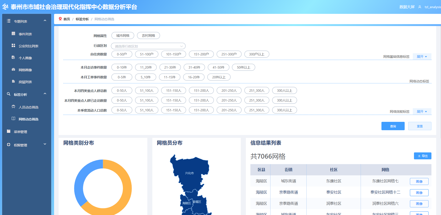 泰州市认真贯彻落实党的二十大报告,在江苏省委政法委的指导下,结合本地实际,立足实战实用实效工作目标,科学规划、建设、完善泰州网格化社会治理智能应用平台(以下简称“泰治理”),全力打造集基础数据核采、巡查走访服务、统计分析研判、预测预警预防、指挥调度监督、专项应用建模等功能为一体的综合应用平台。