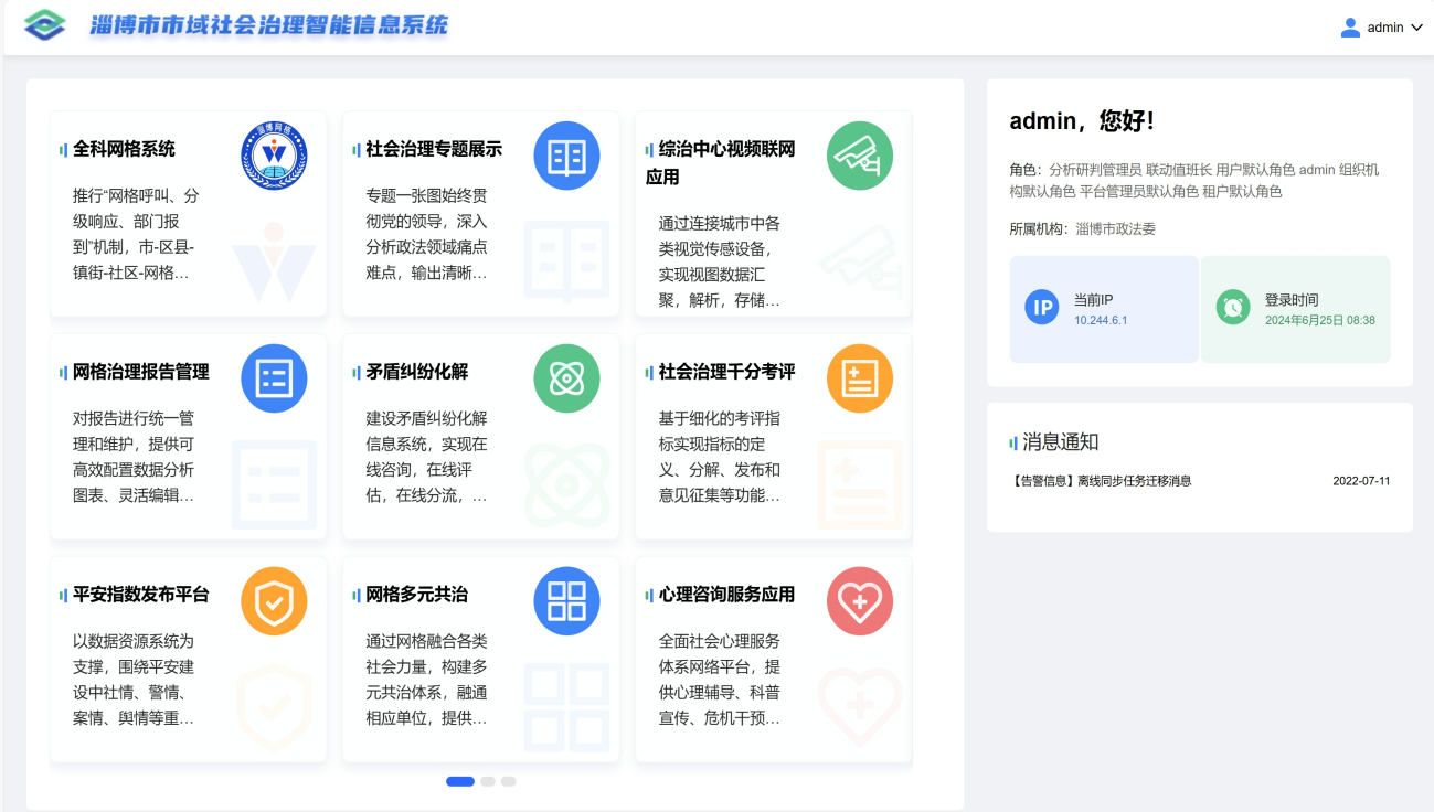 淄博市被确定为全省首批市域社会治理现代化试点城市之一,为加快推进智能化管理、精细化服务,推动区县域分头治理模式向市域统筹推进治理模式转变,实现基层社会治理“千条线”落入“一张网”,提升市域社会治理效能,根据“数字淄博”建设总体要求,建设淄博市市域社会治理智能信息系统。