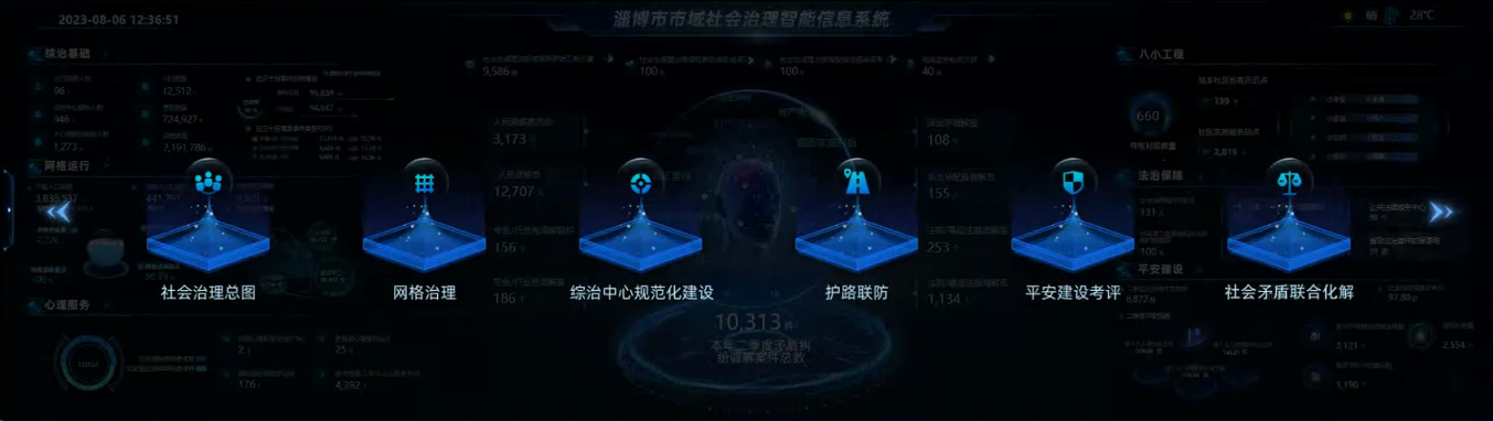 搭建19个专题应用场景,涉及指标700余项、归集数据1600万余条,通过“报”“考”“采”“访”“学”“督”“派”“管”“协”“评”十项融合性功能支撑,构建“一个终端采集、一个中心共享、一个平台联动、一张地图指挥、一个后台管理”的“五个一”网格管理脉络,横向实现跨区域、跨部门、跨层级联动指挥,纵向实现市-区县-镇街-村居-网格5级联动,构建起“数据为体、业务为用”的双轮驱动格局。于2023年4月顺利通过全国市域社会治理现代化试点合格市试验收,入选山东省数据创新应用中心经典案例。