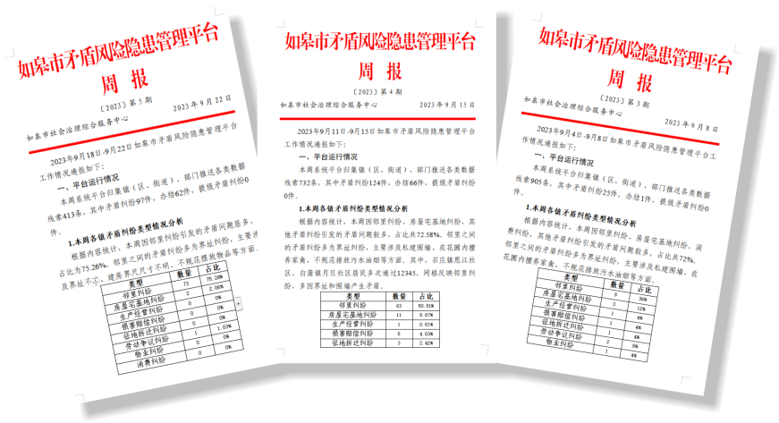 近年来,南通市委政法委、如皋市委政法委坚持和发展新时代“枫桥经验”,从“治理数据聚合”“分类分级研判”“线上线下联动”三向发力,结合“精网微格”效能提升行动,创新开发应用矛盾风险隐患智能管理平台,着力破解部门信息不畅通、预警研判不精准、在线功能不闭环等问题,提升防范社会矛盾风险效能。通过搭建数据汇集平台、建立数据采集网络、畅通群众诉求渠道,实现全域数据资源化零为整,一个平台汇聚纠纷信息;通过建立标准平台架构、推动数据分类研判、落实纠纷反向预警,实现全量监测风险隐患,六类数据实时研判预警;通过建立全程管控、分类处置和挂牌攻坚机制,实现全链管理闭环处置;通过三项机制打造实战引擎,以智治手段进一步化解各类社会风险和问题矛盾,全面提升治理效能,着力构建共建共治共享的社会治理新格局。