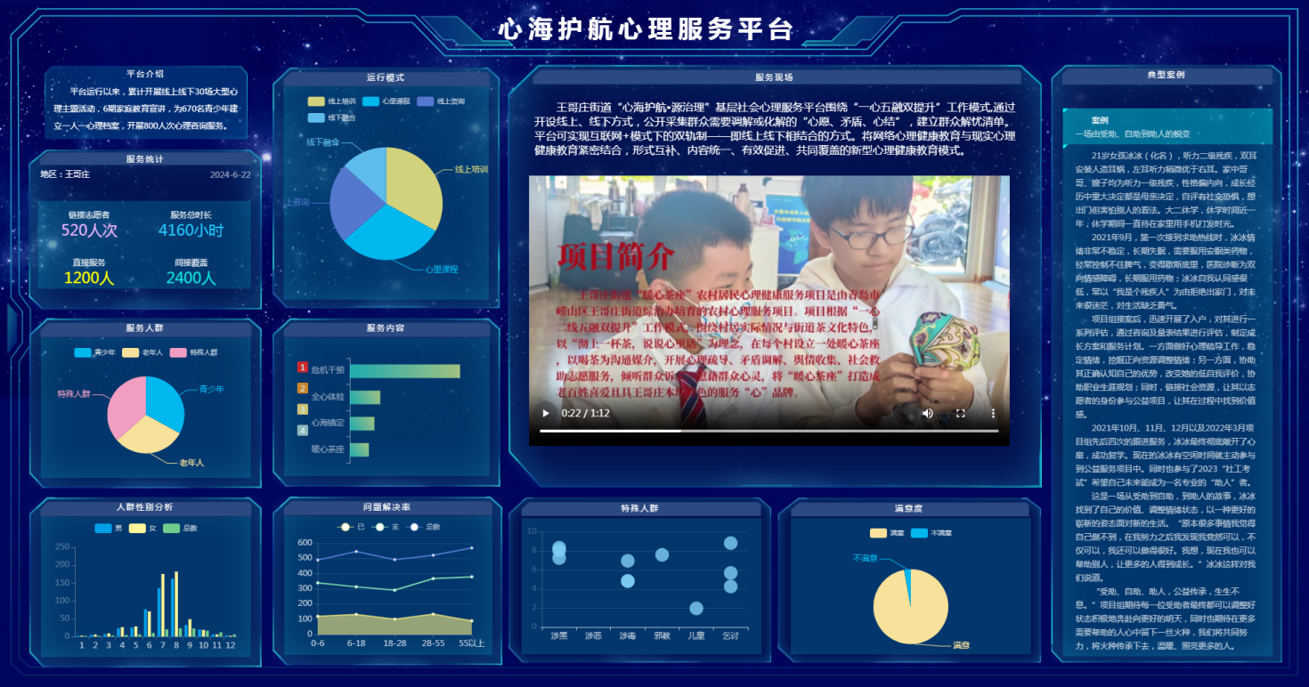 王哥庄街道“心海护航·源治理”基层社会心理服务平台可视化系统展示界面