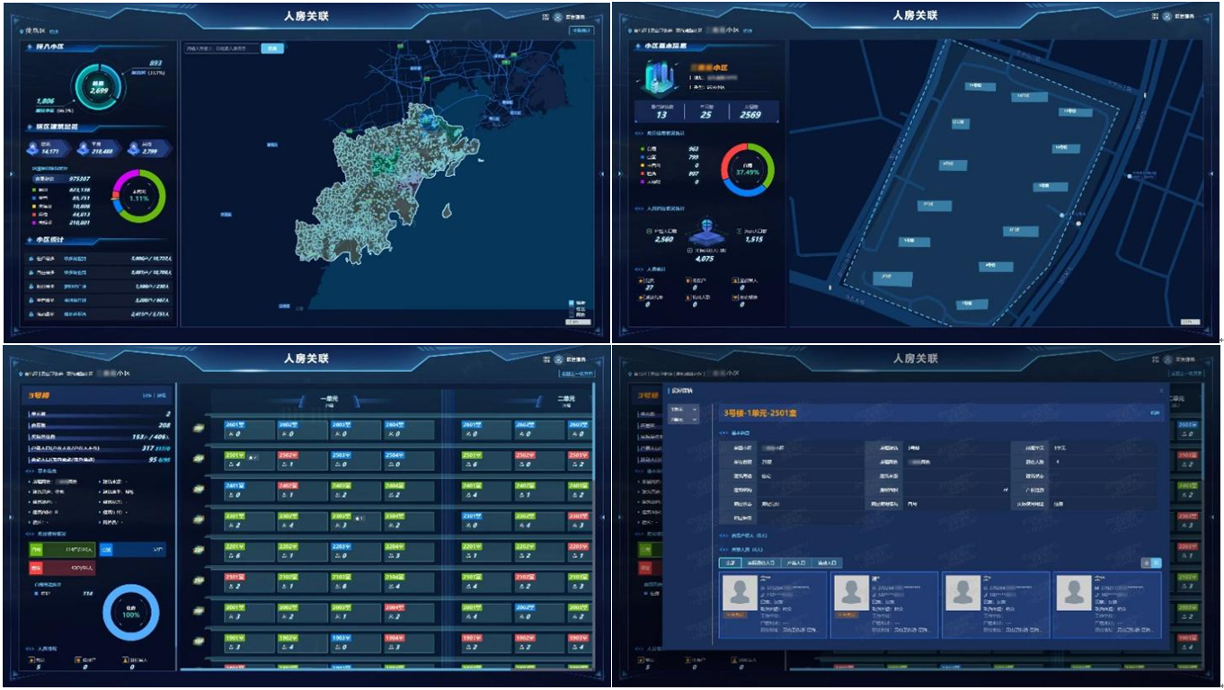 将人口、房屋、网格、事件等要素关联,房屋划入网格里、人口落在房屋中、事件标在人口上,探索人口动态化治理新路径。截至目前,人房基础信息治理平台已接入居民小区1791个,自然村891个,房屋总量983766,人口总量1678936,人房关联数1651128。