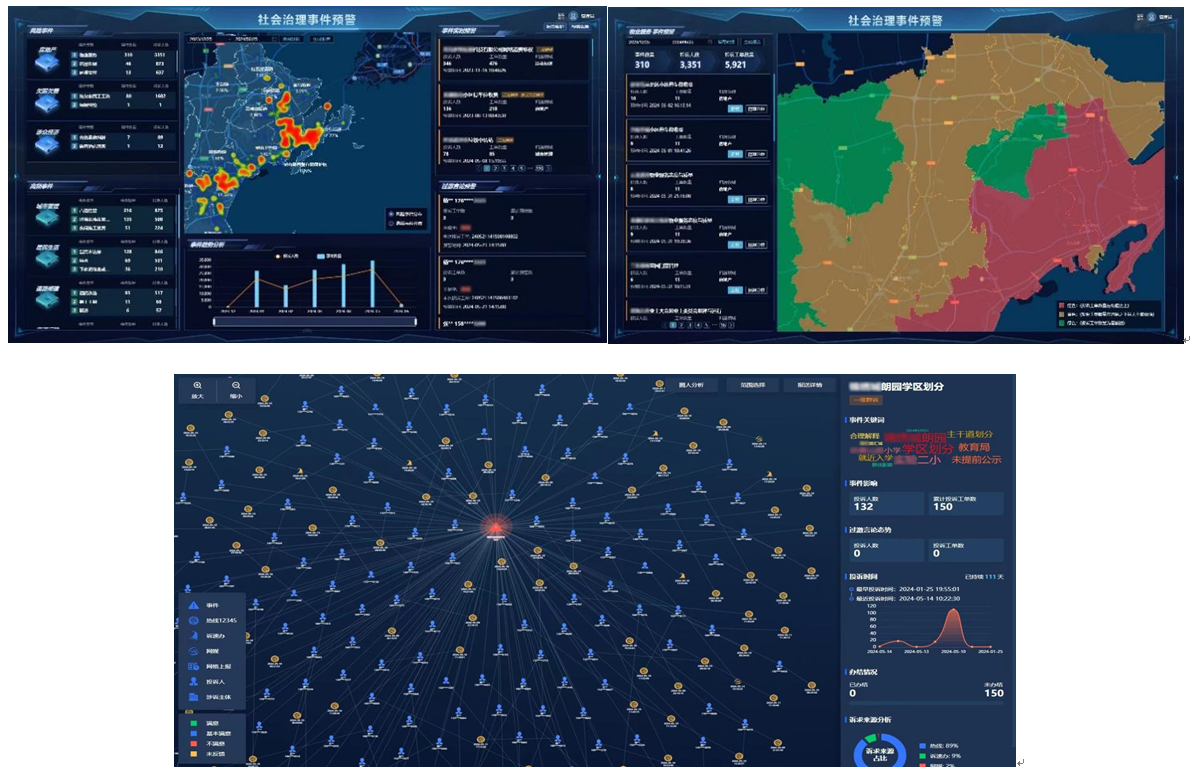 以互联网、大数据、人工智能等新一代信息技术为支撑,构建社会治理事件预警系统,为掌握全区社会治理情况以及推动风险事件及时预警提供了便捷。截至目前,已通过该系统预警出风险事件24万余件。将“人、事、情”构建知识图谱,通过图谱分析可直观、精准查找风险点位,数字技术与社会治理的深度融合,畅通了人民群众诉求表达渠道,又把风险化解在萌芽之中。同时,数能魔方工具可由工作人员定制,实现即使即用,节省了传统数据分析方式的时间,有力的为基层工作人员减负。