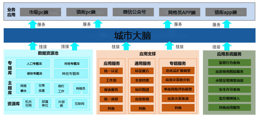 依托“城市大脑”,将城建、交通、应急、自然资源、卫健、公安等各职能部门“条数据”进行归集、储存、治理和融合,形成“一个大脑”治理格局。