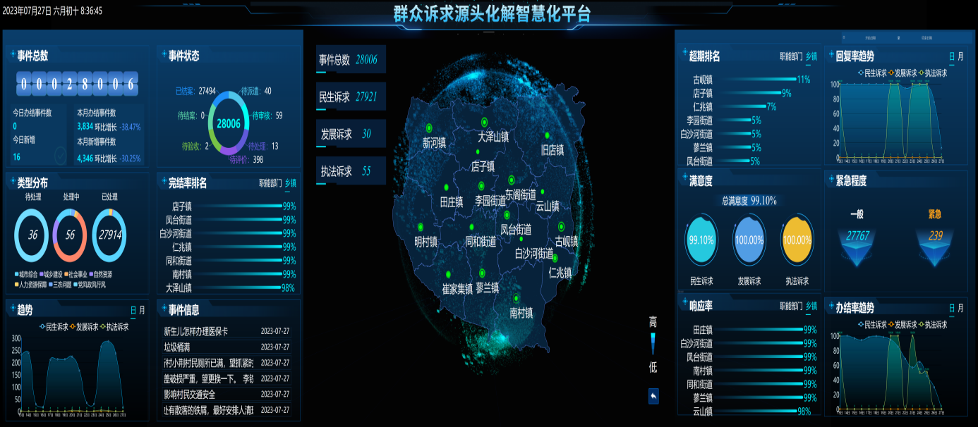 建成1个市级社会治理指挥中心、17个镇(街道)指挥中心、1个高铁站指挥中心,实现对综治维稳、公共服务、行政执法的统一指挥、统一协调、统一调度。在全市划分了2079个网格、2.09万个微网格,每一个网格配置一名及以上专职网格员。通过社会治理大数据平台,实现网格员精准巡查、“一键”上报、视频调度等多项功能。