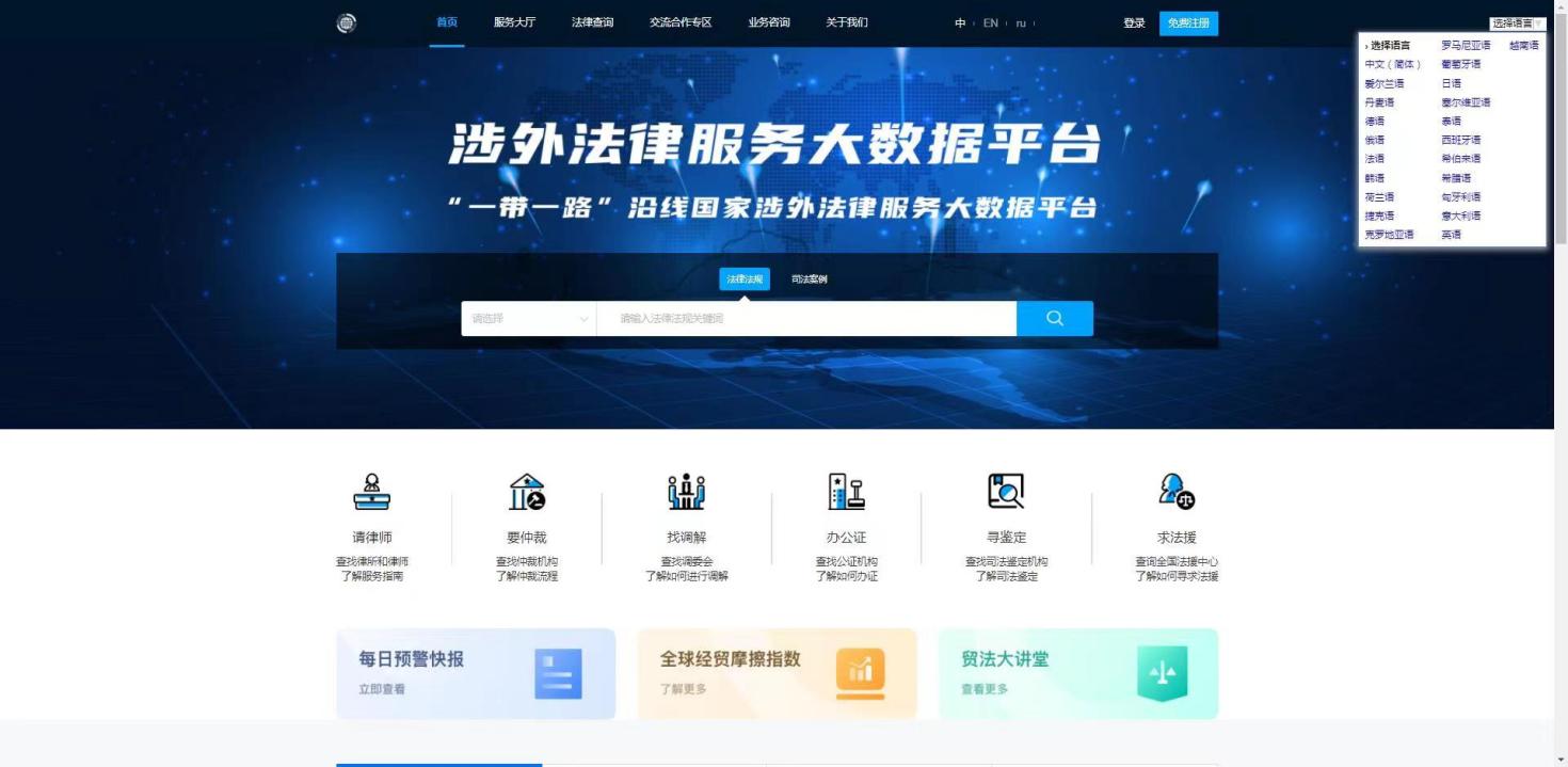 上合“法智谷”主要分为线上线下两部分,线上建设涉外法律服务大数据平台,线下打造涉外法律服务产业集聚区,以此形成线上线下全覆盖、多维度涉外法律服务生态。“线上”,建设涉外法律服务大数据平台。整合上合组织国家的法律、机构和案例等全量数据,重点建设知识数据库及“法律查询、法律服务、交流合作”三个功能模块。法律查询功能,可进行上合组织国家的法律查询、案例查询、机构查询,实现21种语言在线实时翻译功能,解决律所和企业对国外法律法规和政策不熟悉的问题;法律服务功能,为企业提供一站式法律咨询、律师合作、在线培训等综合服务,在最短时间内匹配专业律师,节约了用户和律师的时间成本,有效的解决了用户找律师难、律师找业务难的尴尬局面;交流合作专区,促进涉外法律从业者之间在法律业务、商务协作等方面资讯的互动与互助,为涉外法律服务从业人员拉通供需,进行信息、资源的有效整合,提升涉外法律的整体业务水平。“线下”,打造上合“法智谷”产业集聚区。引进国际知名律师事务所和权威仲裁机构,汇聚翻译、公证、仲裁、会计审计、资产评估、产业孵化、智库院所、法律援助等机构,实现法律咨询、律师代理、国际仲裁,以及会计师、评估师事务所一体化办公,提供一站式法律服务,着力打造集涉外法律服务产业、涉外法律学术研究、涉外法律配套赋能于一体的涉外法律服务产业高端集聚区、发展示范区和法律资源核心区。