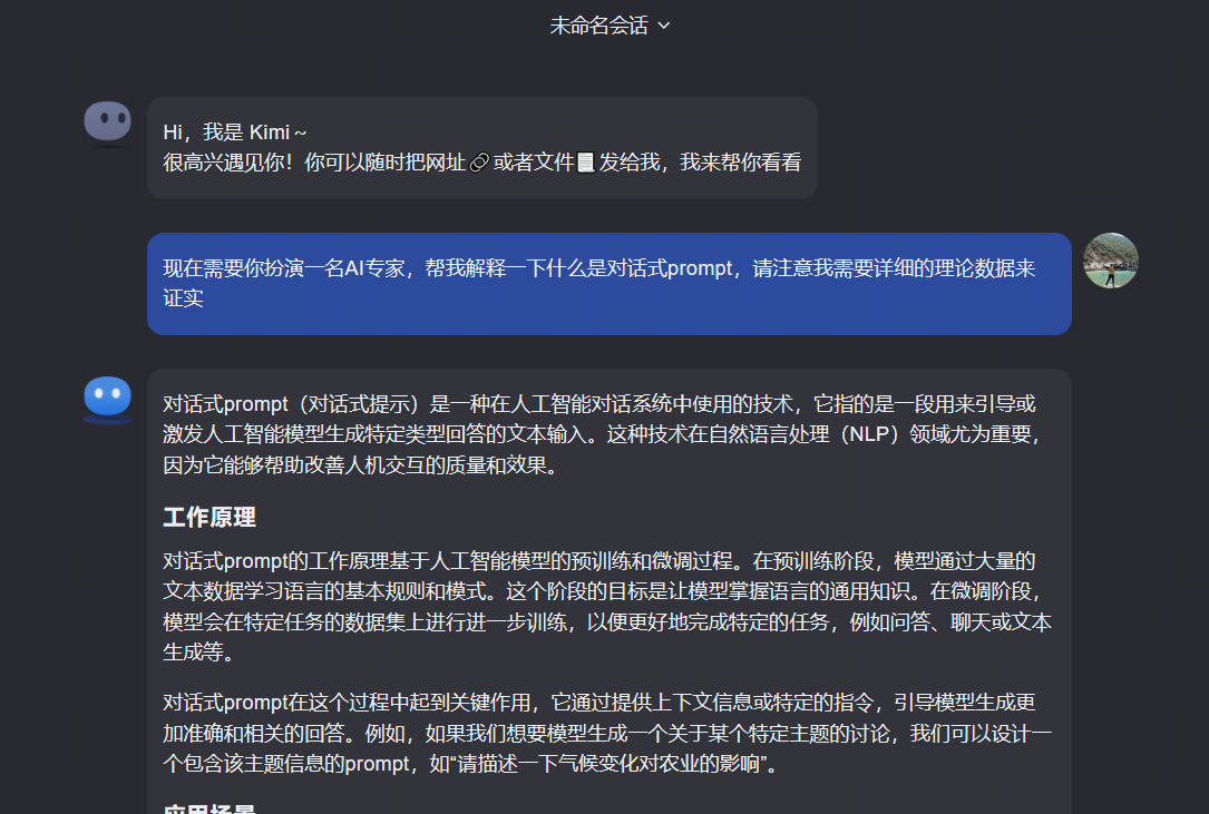 对话式样prompt = 角色 + 任务 + 要求 + 细节(以下是使用人工智能大语言模型Kimi的聊天截图)