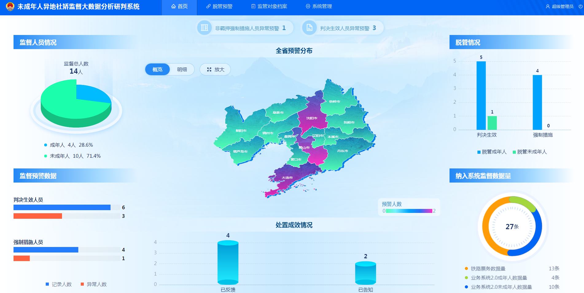 破产案件法官办案工作平台,可实现对破产案件工作节点监管、破产费用监控等,并建立破产费用联合管控机制,实现资金流转全流程线上处理,账户收支全程留痕可复可查。为法官、管理人提供实时对账、及时预警、援助资金登记和管理、破产费用及破产财产分配款划转等线上金融服务,实现对破产案件全部资金全流程监管。同时可还对管理人工作进行评价,提升管理人工作动能。同时根据管理人有效工作时点、工作周期,设置16类100余项监管节点,实现对管理人履职的线上动态监管,考评结果实时反馈,不当履职行为及时纠正。达到随案高效监管的目标,全面提高管理人履职工作效率。