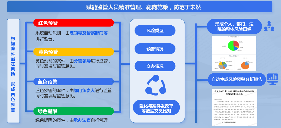 与传统审判流程管理系统滞后、数据表达固定化机械化、统计分析人工依赖性强等问题相比,“易策”系统直接对接原有审判、执行管理系统大数据,通过强大的数据引擎分析,能够实现对全市每年十几万条案件信息的实时更新、运行分析,达到同步汇聚、同步治理和同步入库,通过大数据运算准确、及时、高效分析运行趋势,动态化、可视化展示全市法院的各项审判、执行数据态势,对质量指标、效率指标进行实时分析,对结案率、万人成讼率、热点案由、人均办案情况等重点监督领域进行实时展示,让数据会发声、会表达,一目了然、清晰明确。比如,通过定量化分析显示,2023年全市法院共受理各类案件137882件,审执结案件123376件,同比分别上升10.44%和4.39%。审结涉企案件3.45万件,一审合同案件平均审理用时缩短至35天。执行完毕率提升8%、实际执行到位率提升6.74%、终本率下降11.19%。这些数据为我们客观评估全市法院审判管理数据变化,进一步优化改进措施,把握工作重点方向提供数据支撑。“易策”系统聚焦“质量优先、兼顾效率、关注效果”,为审判管理提供静默化监管手段,开展审判质效态势分析,建立全链路审判监督管理机制,对全市法院的办案质量、效率、效果进行实时分析,通过分析研判,对标全省最优值,及时找准差距,切实整改提升。2024年1-6月,全市法院各项指标优良合格率达92.31%,位居全省前列,核心质量指标全部达标。案件比、上诉率、一审裁判被改判率等10项指标位居全省第一方阵,执法办案工作全面提质增效。