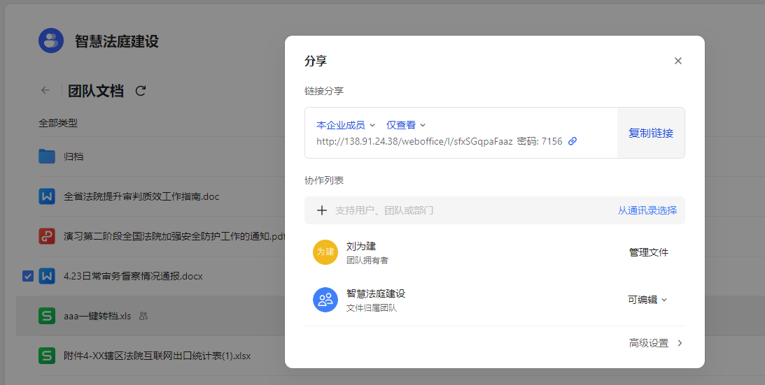 打造便捷应用空间,如与内网即时通讯工具Cocall交互,发送特定链接密码共享,实现文档精细化权限控制,保障文档流转和分享安全可控。