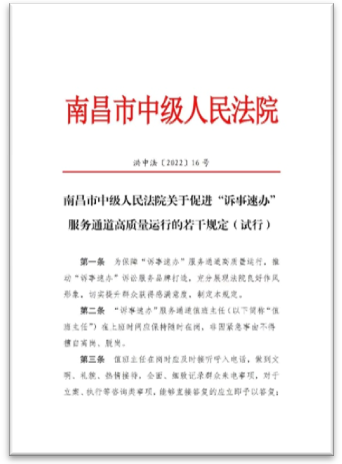 以下推出的是《智慧法院篇 | 创新经验之“南昌法院‘诉事速办’通道全栈式服务”》