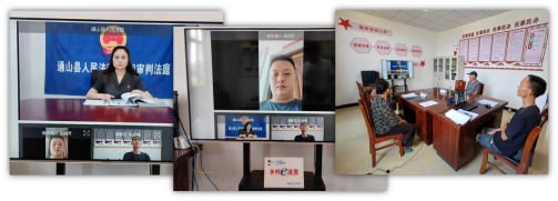 图片说明:咸宁市通山县大畈镇人民法庭所辖慈口乡山口村 应用“乡村e法官”进行互联网开庭现场