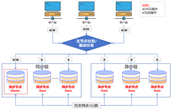 读写分离集群中同步组中配置了多个节点,且都处于运行状态,业务系统出现故障时可实现秒级切换。