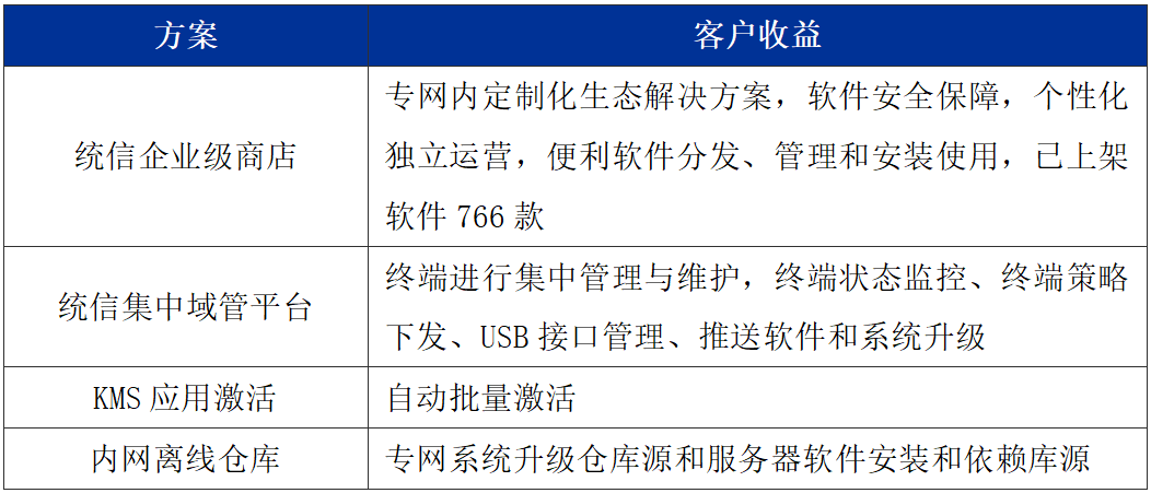 UOS解决方案的部署和上线解决了法院专网内软件安装、系统和软件升级维护不便的难题。