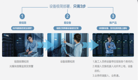运维更简化:不需要人工进行光链路的排查,一键即可定位故障点,保障故障恢复时间在30分钟内。并且从报修到故障恢复实现全过程跟踪实现 100%问题闭环。
