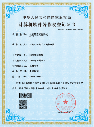 可复制推广性实现便捷共享。智选检办线索筛查流转平台的场景应用丰富,数据归集和研判逻辑性强,具有可复制推广性和强大的拓展性。西安市长安区人民检察院在2024年3月13日已获得国家版权局计算机软件著作权登记证书,拥有智选检办线索筛查流转平台完全的知识产权。并在设计之初,就以“一体创新、全省共享”为目标,从全省可复用的角度进行架构设计,使得其他单位无需重复开发,只需开通权限、录入信息,即可直接使用,这为平台的推广和应用提供了便利。目前,智选检办线索筛查流转平台正在西安市长安区稳步推进推广工作,其先进的技术和显著的成效,无疑将为更多地区提供宝贵的参考和借鉴,推动我国检察机关在数字化道路上迈出更坚实的步伐。