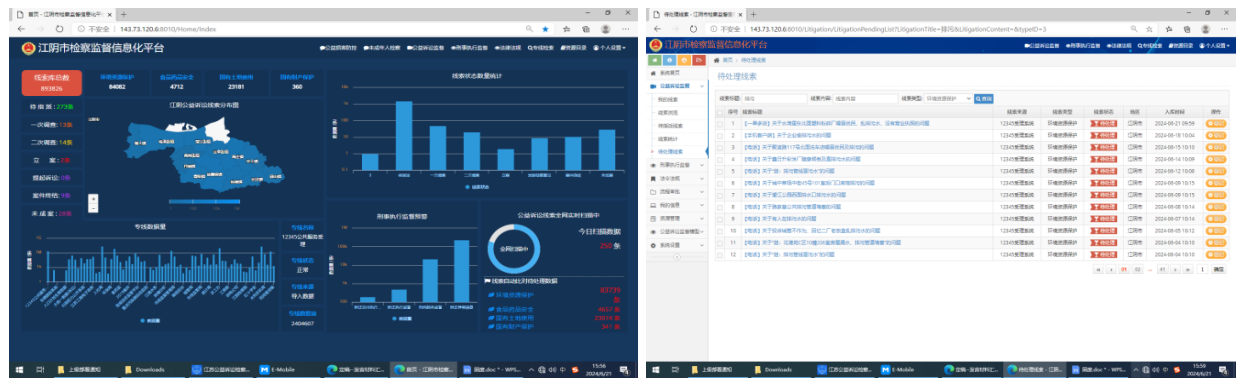 智慧公益诉讼办案系统布局“智慧公益诉讼平台”“快速检测中心”和“公益损害防控中心”三大信息化项目,通过自动抓取线索、智能分析研判、科技辅助调查、风险智能预警,为公益诉讼办案决策提供全面信息支持,并推动环境公益全方位系统化保护。