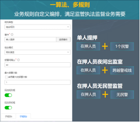 支持一算法、多规则,比如单人提押算法由两个子规则构成,包括:检测到在押人员、检测到1位民警。