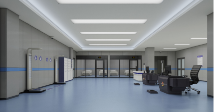 博兴县公安局执法办案管理中心拥有独立的吸毒检测室、等候区、CT室、医疗救助设备、入所前五项体检功能区,充分将专业医务人员和医疗设备前置,真正实现嫌疑人送押送拘前的五项体检工作在中心“一站式”完成,有效解决“一站式”执法办案安全“最后一公里”问题,最大程度降低办案民警工作强度,提高安全指数,极大节约警力资源投入,降低执法办案成本,有效避免嫌疑人送押送拘前的路途看护、体检安全等风险。其中等候区分为6个独立的空间,大量采用单向防爆玻璃,运用3D建模、体征监控定位等技术自动进行空间分配、违规报警,杜绝各类看管风险。此功能区既为基层执法办案单位减负,又助力中心提质增效。