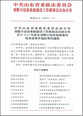 附件:《关于2023年度全省数字法治系统建设优秀成果评选结果的通报》(鲁数法办〔2023〕1号)。