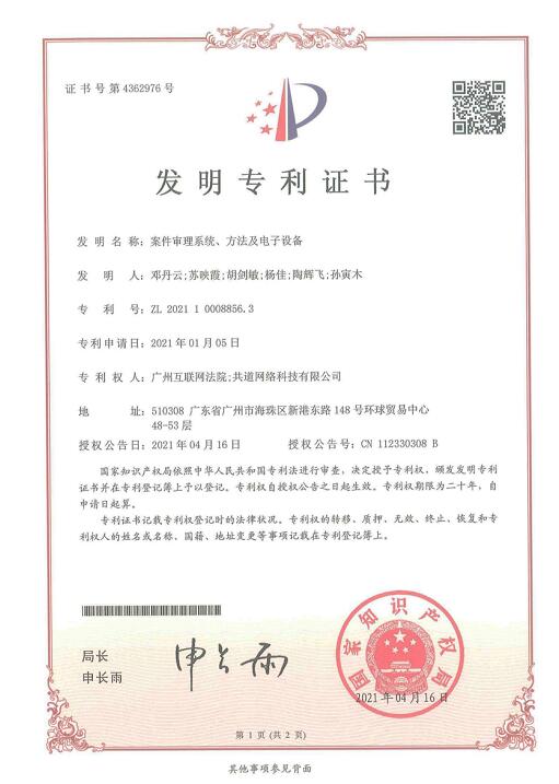 2021年6月,“ZHI系统”收到了国家知识产权局颁发的发明专利证书,此前这个系统的侵权证据比对和裁判文书生成用户界面,获得两项外观设计专利,同时计算机软件著作权还进行了登记。