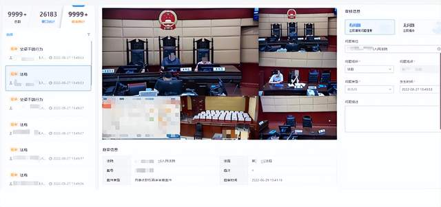 庭审自动巡查:支持对全国51593间科技法庭庭审过程中的人员仪表、人员行为、法庭布置三个维度进行智能视频分析,具备算法模型的本地化自适应能力,平均识别准确率超90%,可有效辅助人民法院督察工作从“人工单线巡查”向“自动范围巡查”模式的转变。