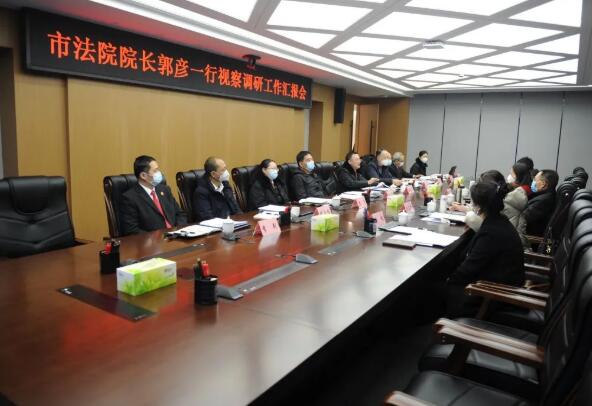 12月30日,市法院党组书记、院长郭彦一行深入青羊区法院文家集中审判法庭和太升人民法庭(金融法庭)视察调研“两庭”建设,并看望基层一线攻坚结案干警,座谈了解年底攻坚结案情况。青羊区委书记何勋陪同调研。