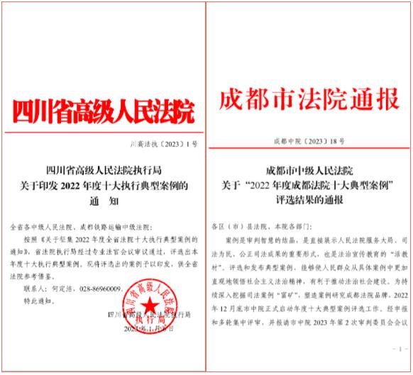 在疫情期间善意帮扶企业蜕变新生、保障86名员工就业生存、维护30余名患者正常就医,一次性执结成都某医院系列案件35件、执行完毕922.8万元,案例同时获评2022年度全省法院十大执行案例和成都法院十大典型案例。