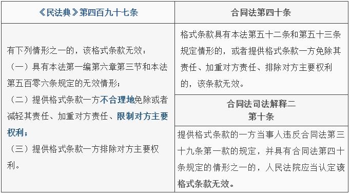 相比于合同法将免责、限责的格式条款一律无效的规定,《民法典》就某些情形新增了“不合理”要件,即前述格式条款仅在人民法院合理性审查后认为不合理时方才无效。这样的新规定体现了《民法典》对合同双方意思自治的尊重,免责限责条款仅在不合理时司法方才介入、否定其效力。同时,《民法典》新增“限制对方主要权利”这一无效情形,在实际效果上更有利于保护合同相对方的利益。