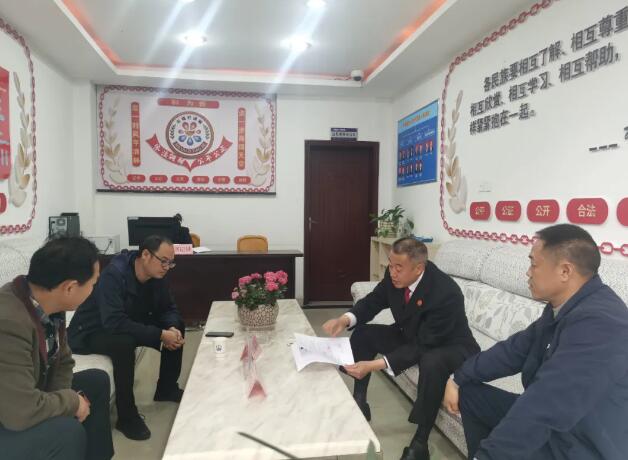 泸定法院“石榴籽”调解工作室成员正在展开调解工作